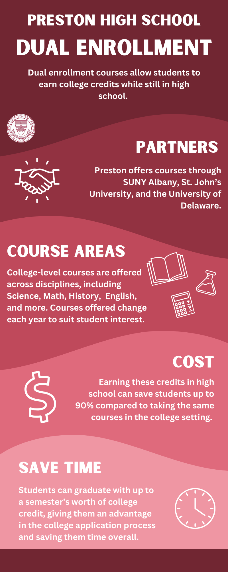 “To see the needs and wants of others and to fill those needs” is the definition of compassion that the school inherits from its patron, Monsignor Preston. As applied to our program of study and personal development, this charism enlivens the educational philosophy of individualization for personal success, happiness, moral behavior (PHS’s motto is “Virtue is a Thousand Shields”) and social responsibility.